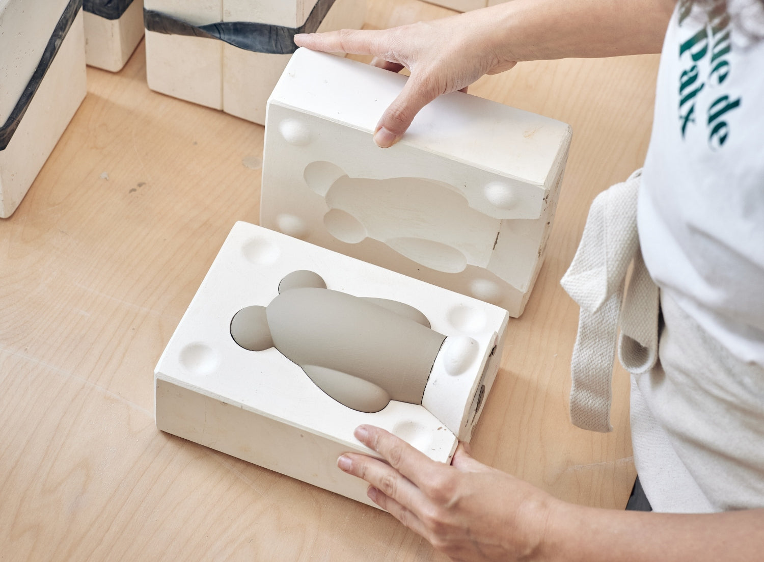 monc creates ceramic figures designed to be completed by their owner.